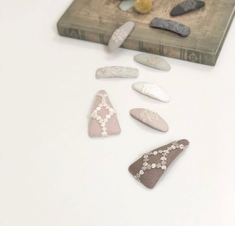 購入前に ”infomation” をお読み頂きますよう よろしくお願い致します ふっくら大きな白いリボン刺繍に お気に入りの生地を重ねて仕上げた ちょっぴり特別なパッチンピン ふだん使いにも おめかしにもぴったりなデザインです さりげないゴールドのブランドプレートが 甘すぎないアクセントに 裏面はふんわり柔らかなフェルト仕上げで お子さまの髪にもやさしくフィットします 「今日のピン、どれにしよう?」 毎日のコーデにワクワクをくれる とっておきのヘアアクセです size : 約5cm × 約6.5cm
